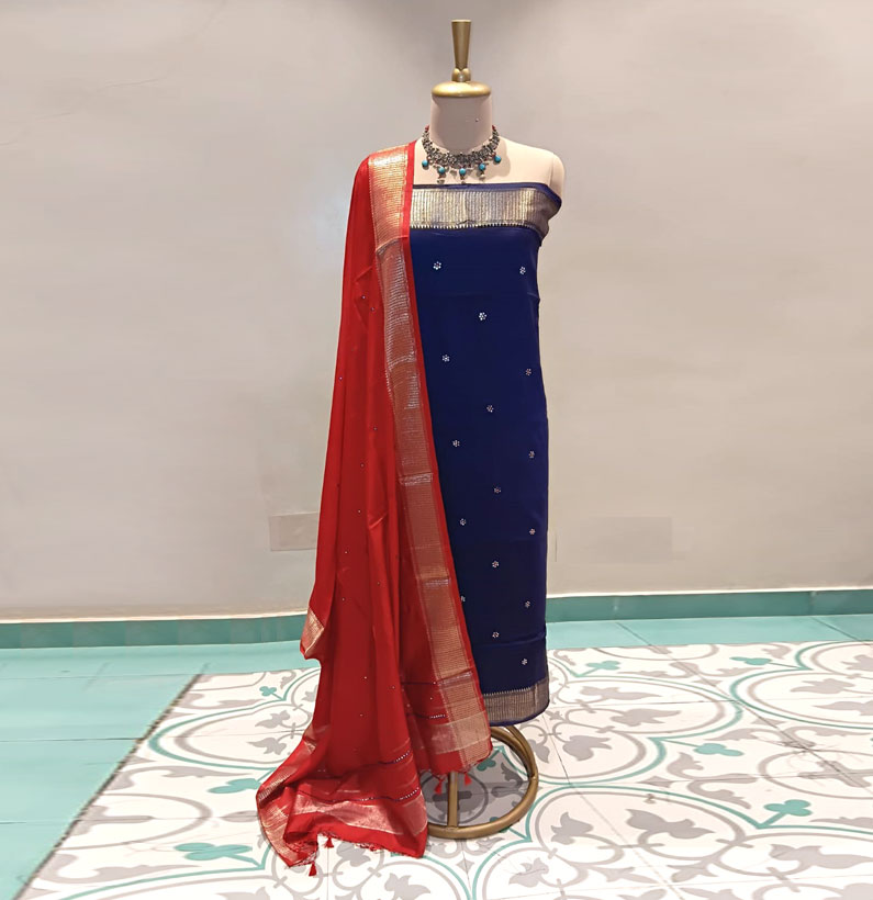 Aart silk suit mirror work blue/red