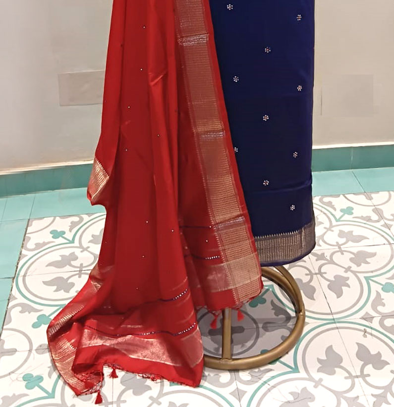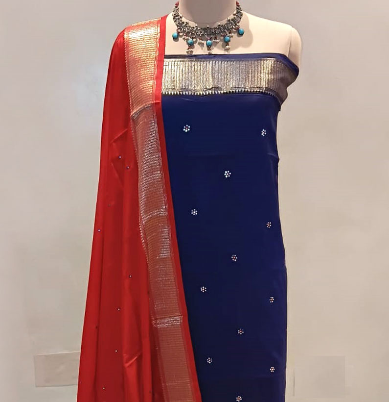 Home Suit Silk Aart silk suit mirror work blue/red