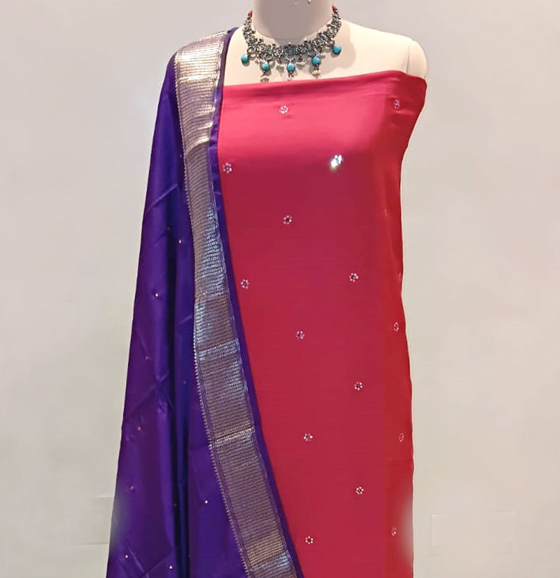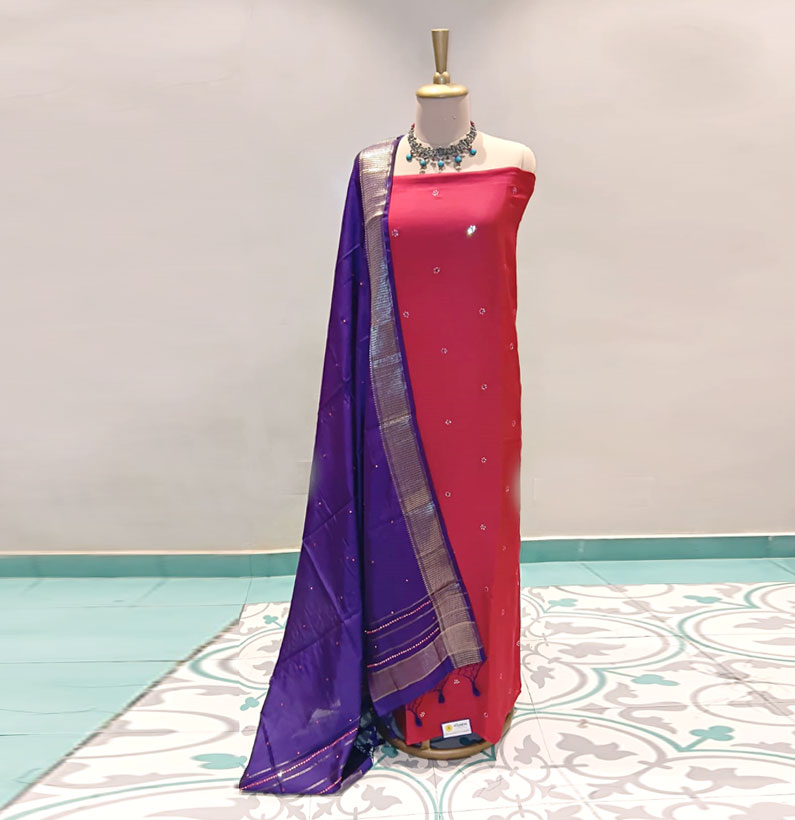 Home Suit Silk Aart silk suit mirror work suit red/purple