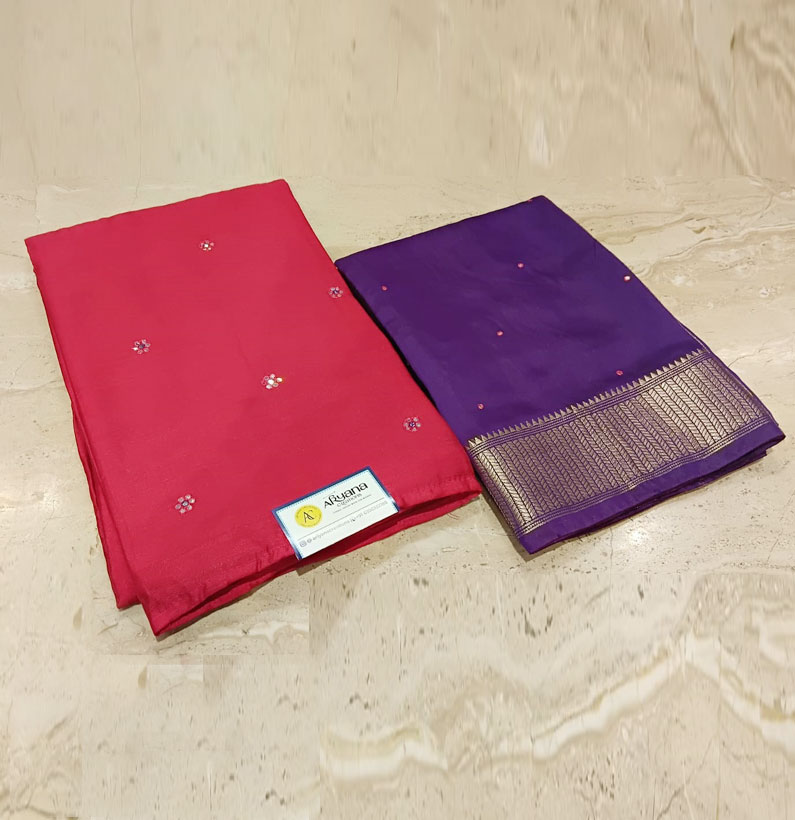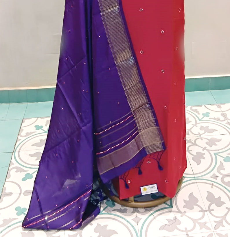 Be the first to review “Aart silk suit mirror work suit red/purple” Cancel reply