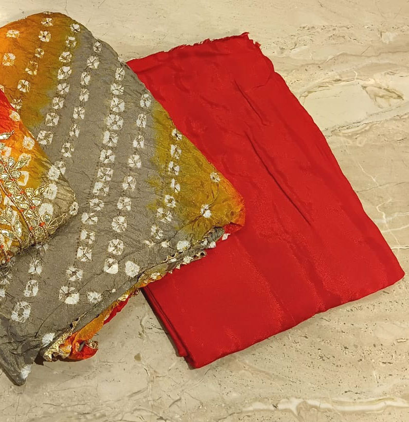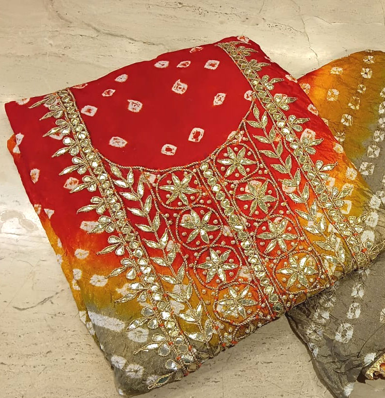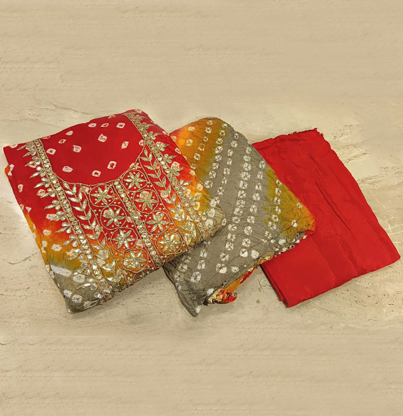 Art Silk Gotta Patti Bandhni Suit Double Shade Orange And Yellow