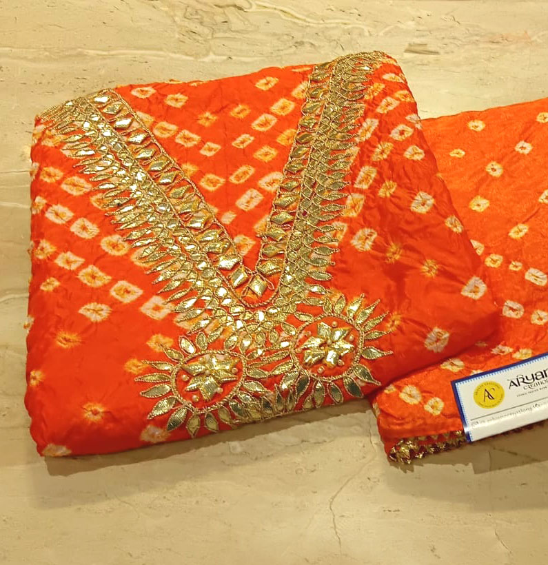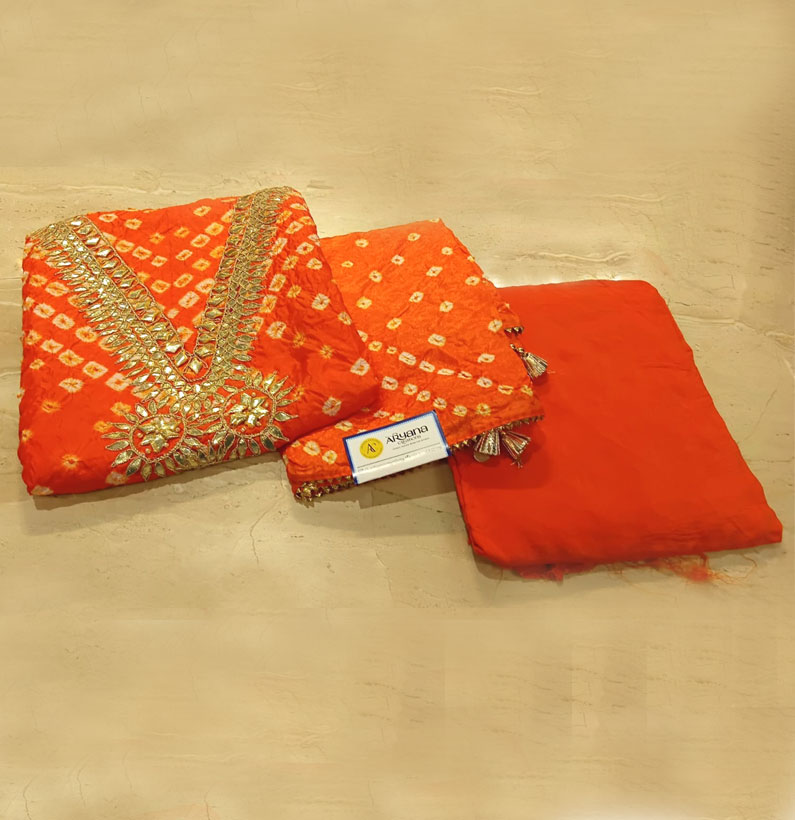 Home Suit Silk Art Silk Gotta Patti Bandhni Suit Orange