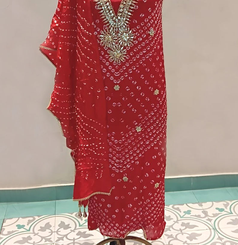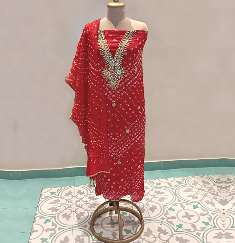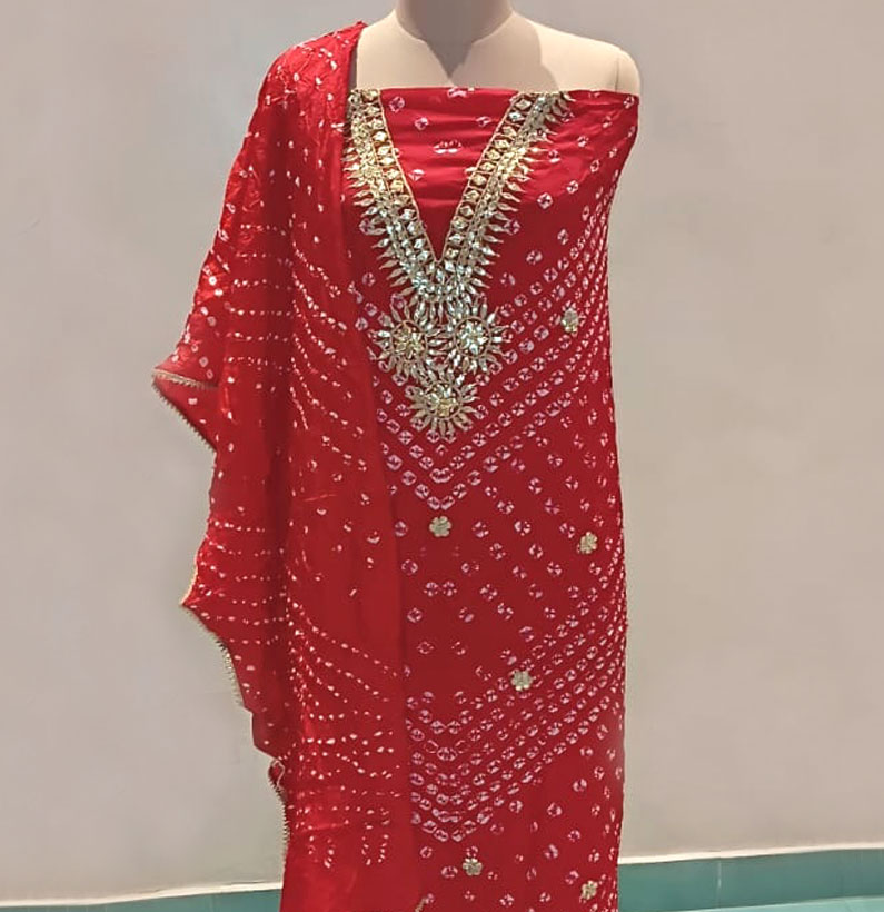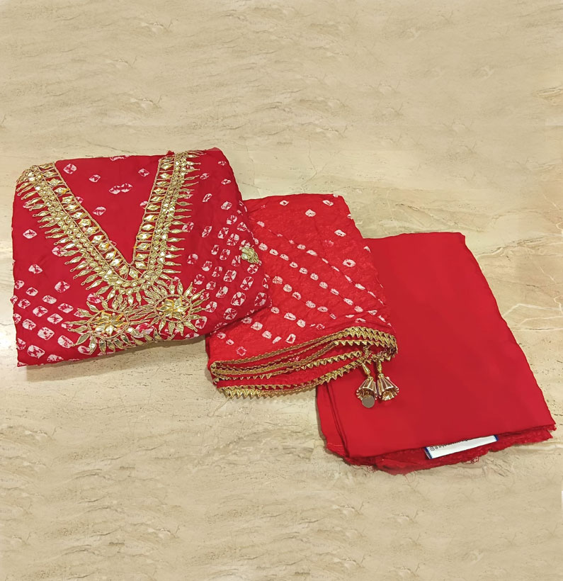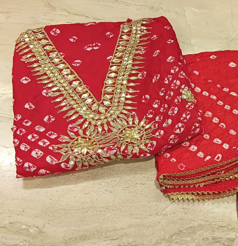 Art Silk Gotta Patti Bandhni Suit Red