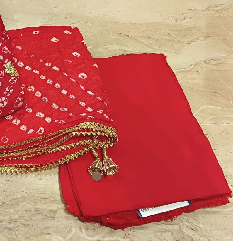 Be the first to review “Art Silk Gotta Patti Bandhni Suit Red”