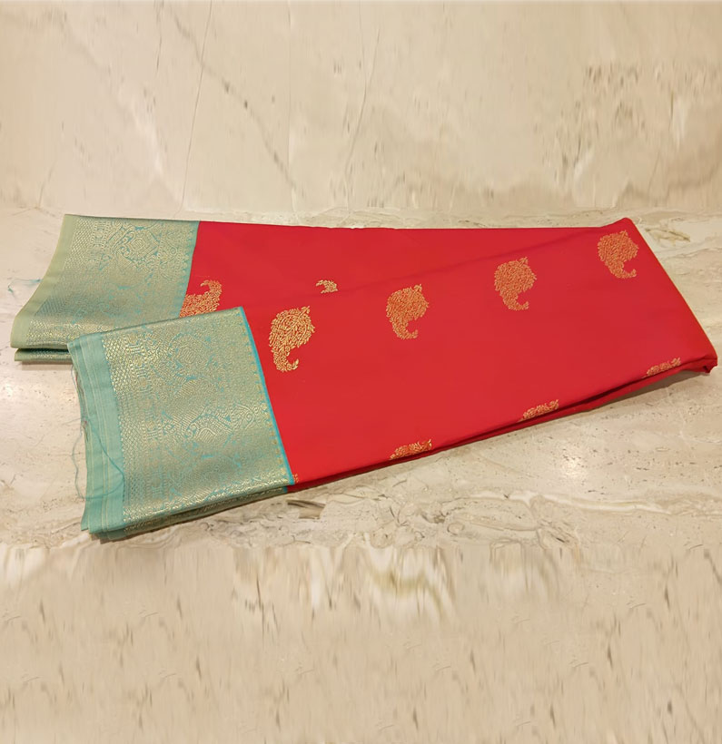 Art south silk saree red /oblique green