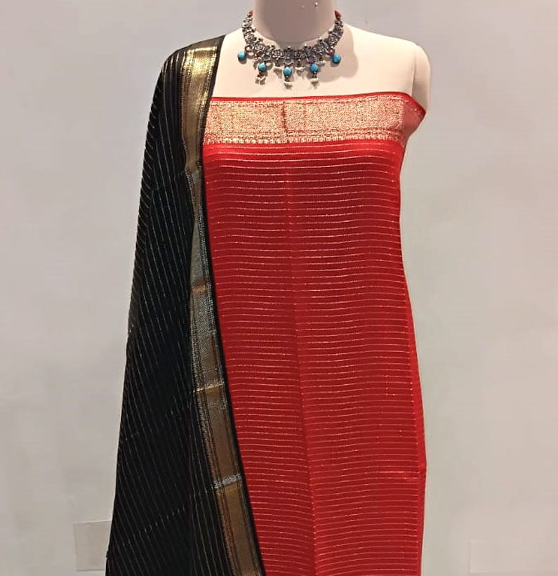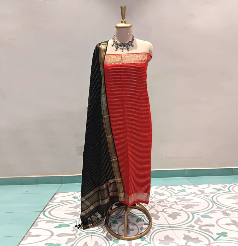 Assam silk suit red/green