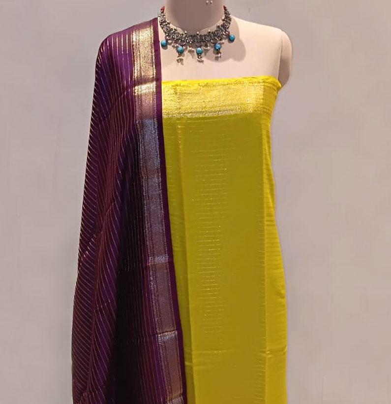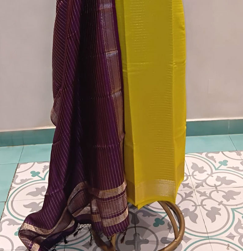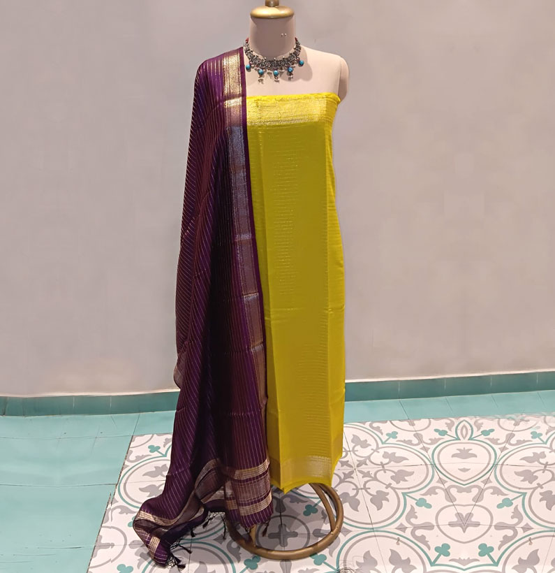 Assam Silk Zari Lined Suit M Green/wine