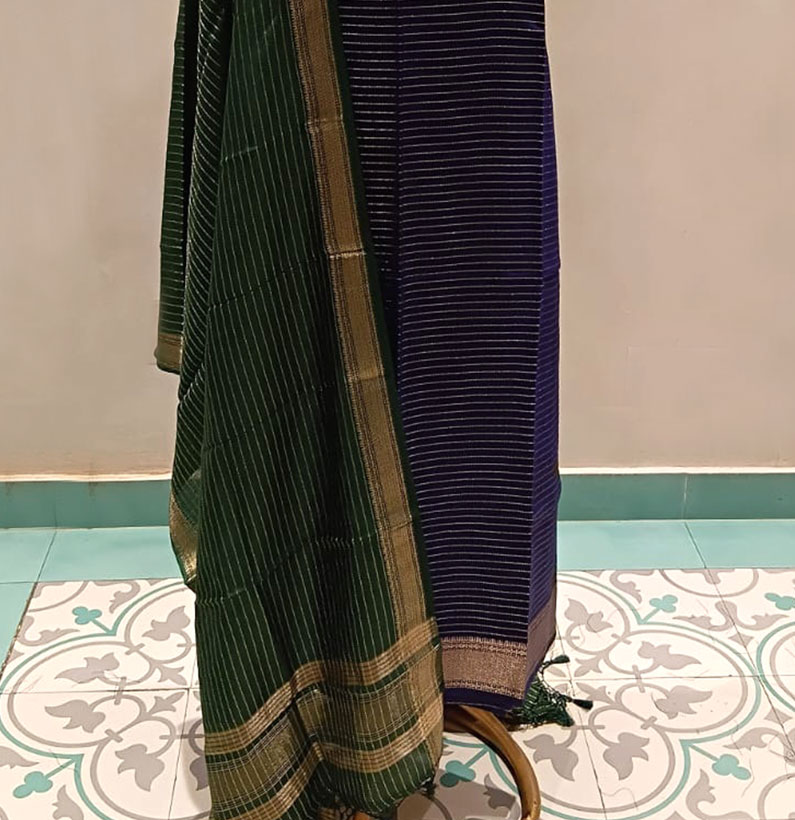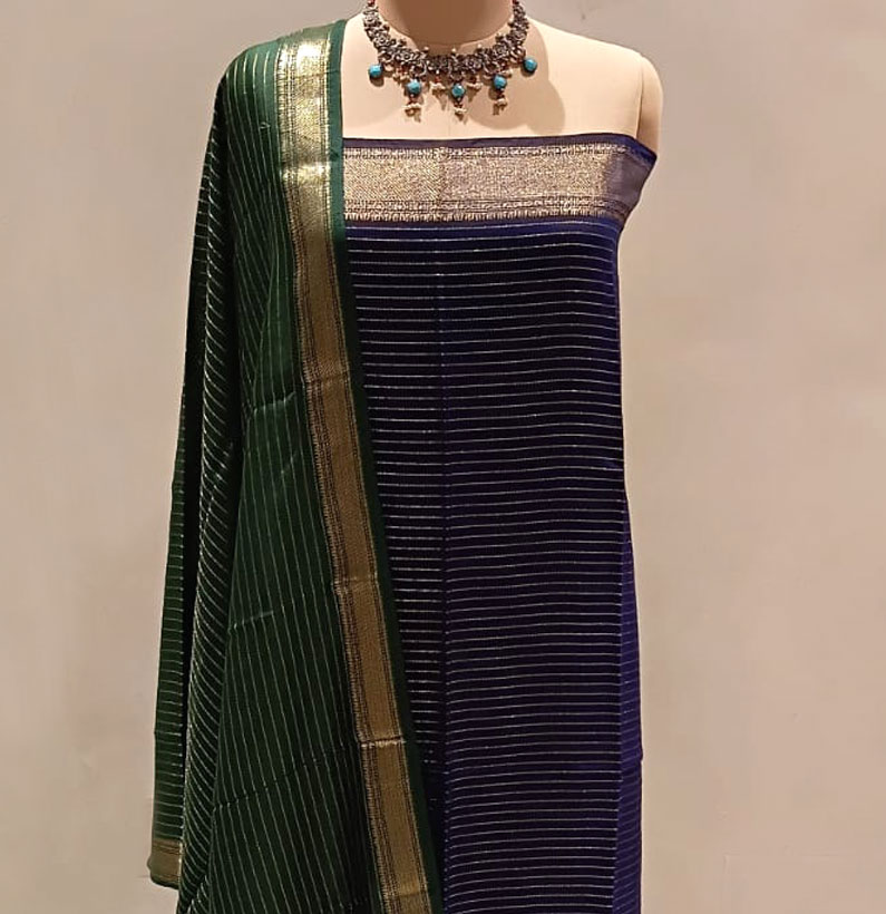 Home Suit Assam Silk Zari Lined Suit N Blue/green