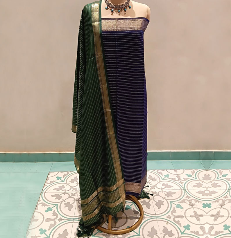 Be the first to review “Assam Silk Zari Lined Suit N Blue/green”