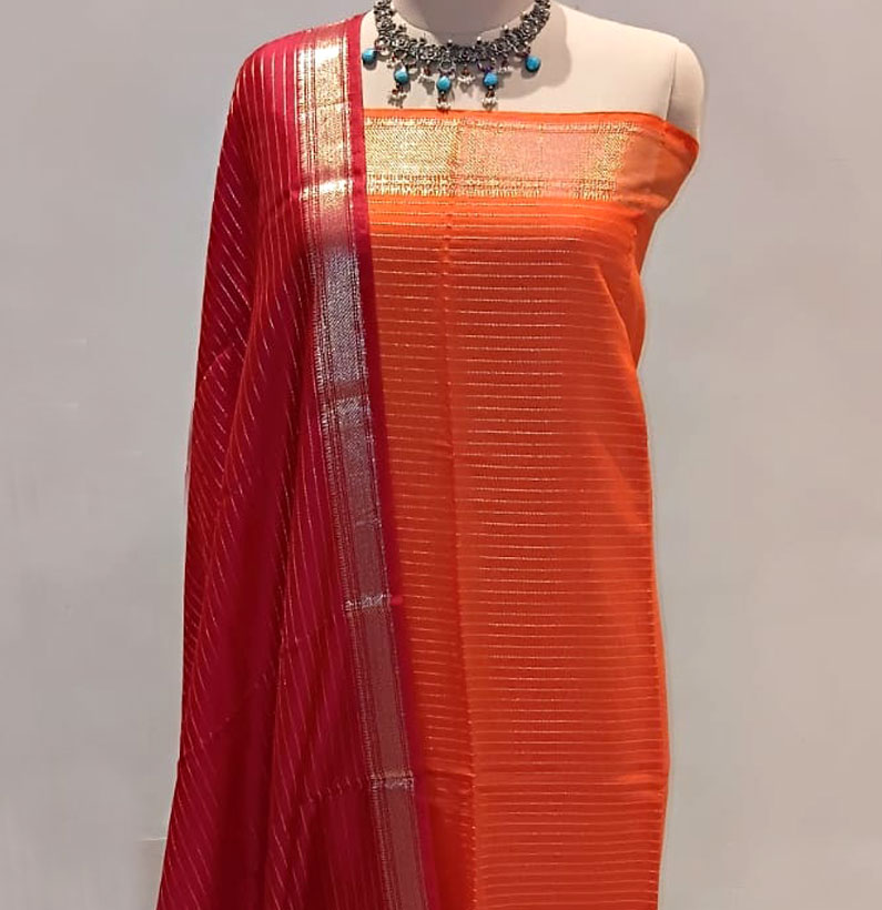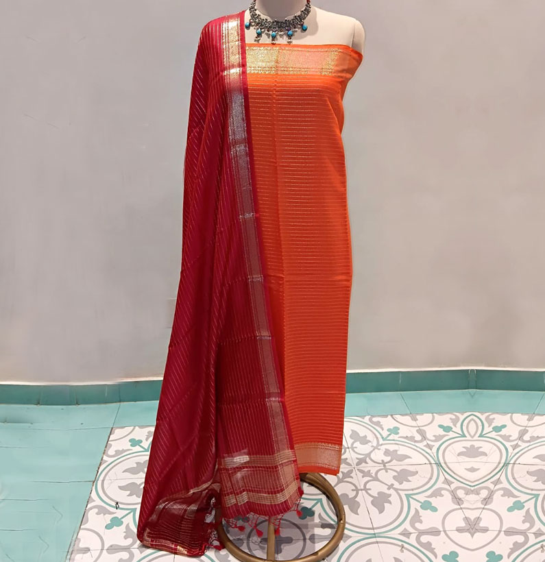 Assam Silk Zari Lined Suit Orange/red