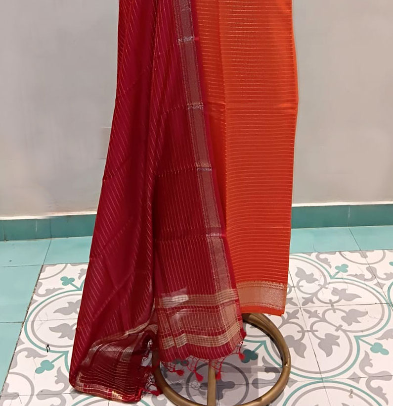Be the first to review “Assam Silk Zari Lined Suit Orange/red”