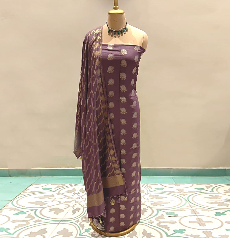 Be the first to review “Banarasi cotton silk suit wine” Cancel reply