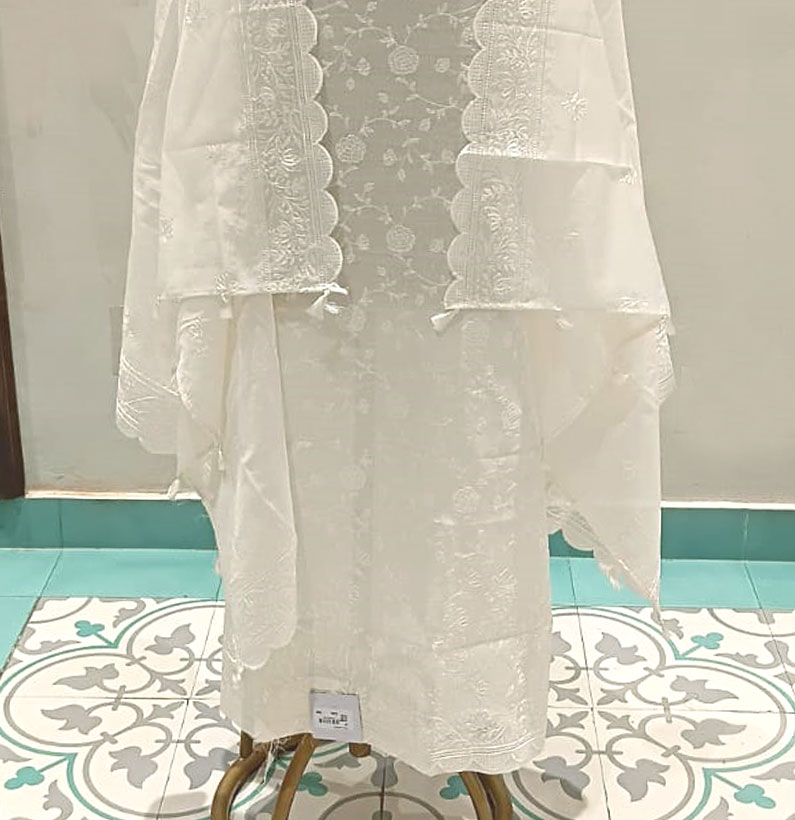 Be the first to review “Chanderi cotton 3 piece embroided suit off white” Cancel reply
