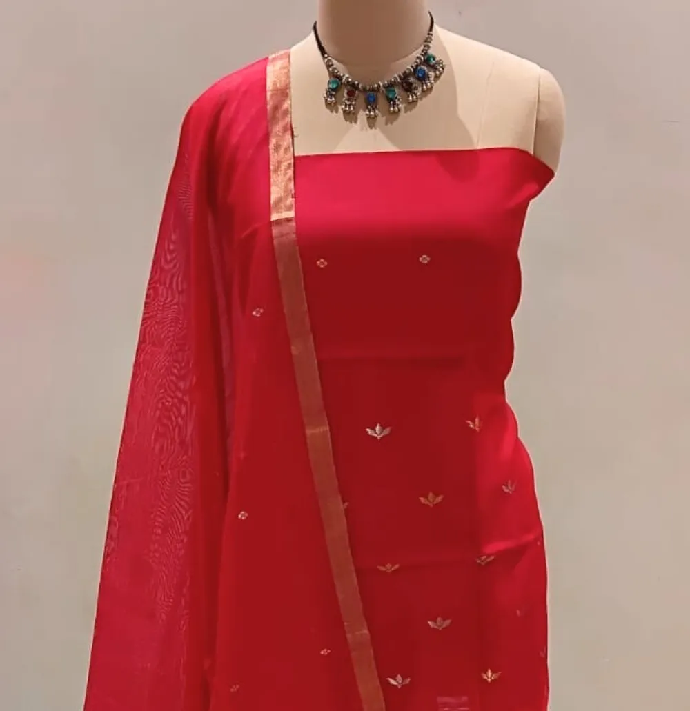 - Crafted in soft chanderi cotton silk with a natural sheen, a gentle sheen too.