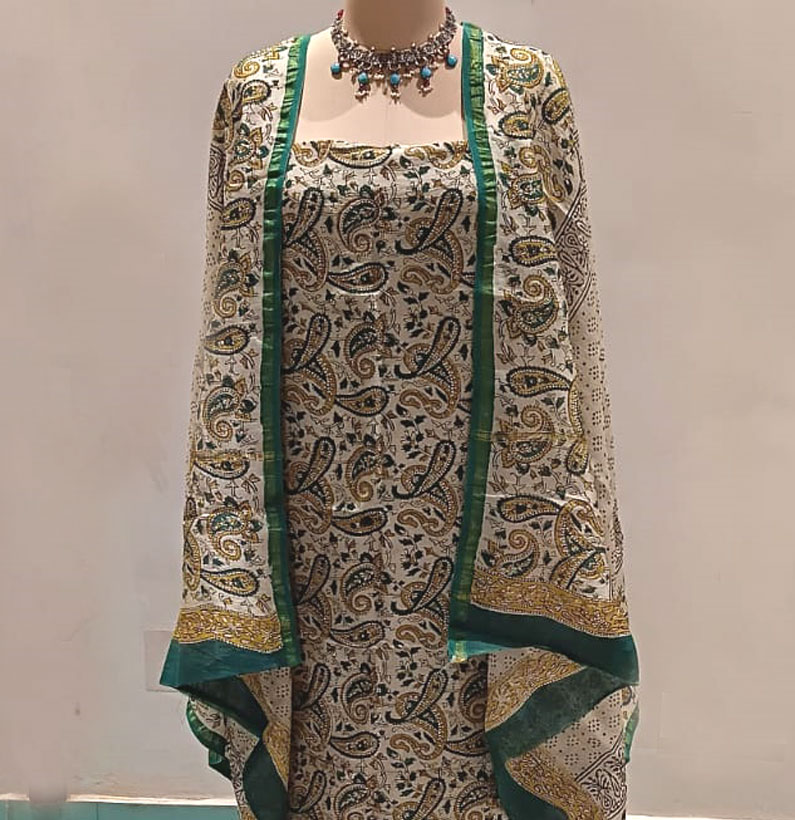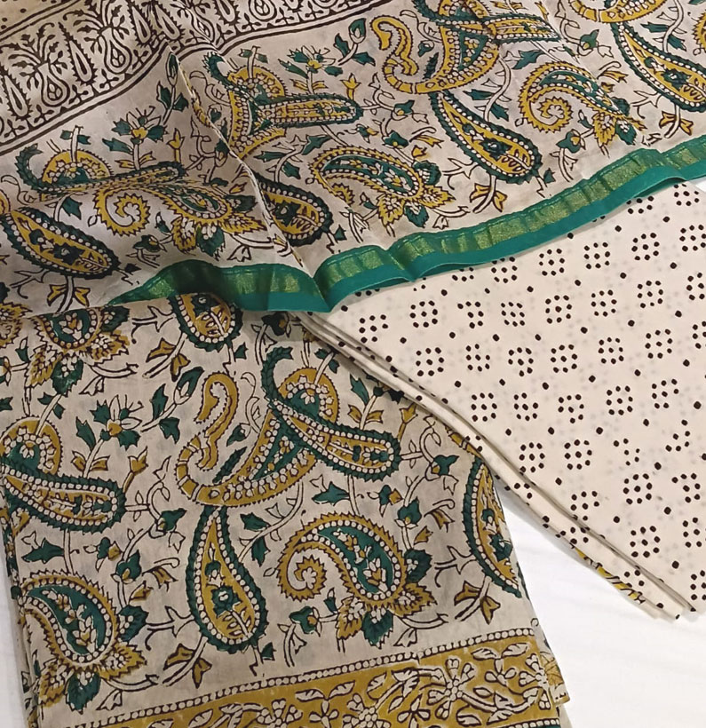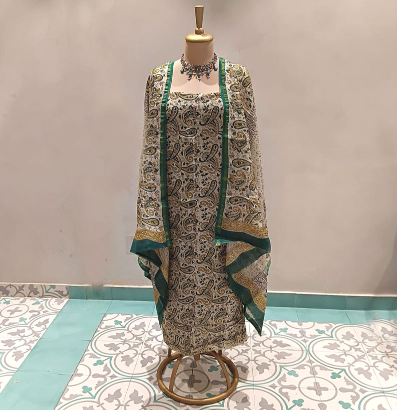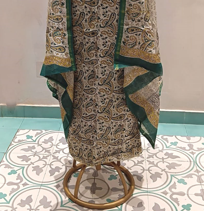Chanderi Cotton Suit beige green