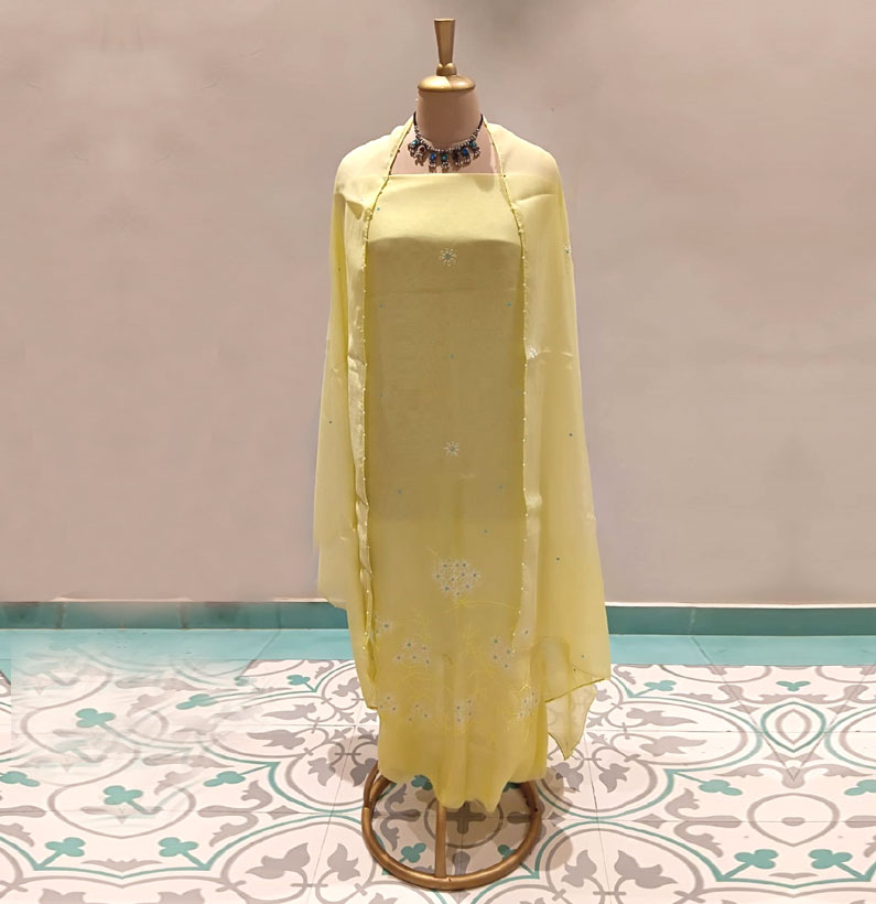 Home Suit Cotton Chanderi cotton suit chain hand pastel yellow