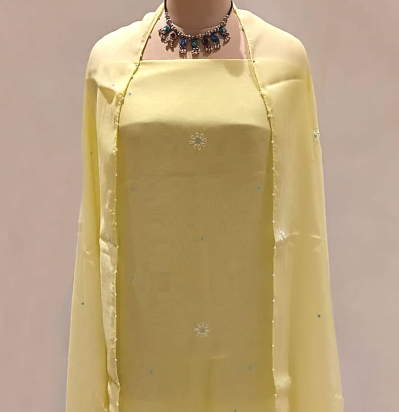 Be the first to review “Chanderi cotton suit chain hand pastel yellow” Cancel reply