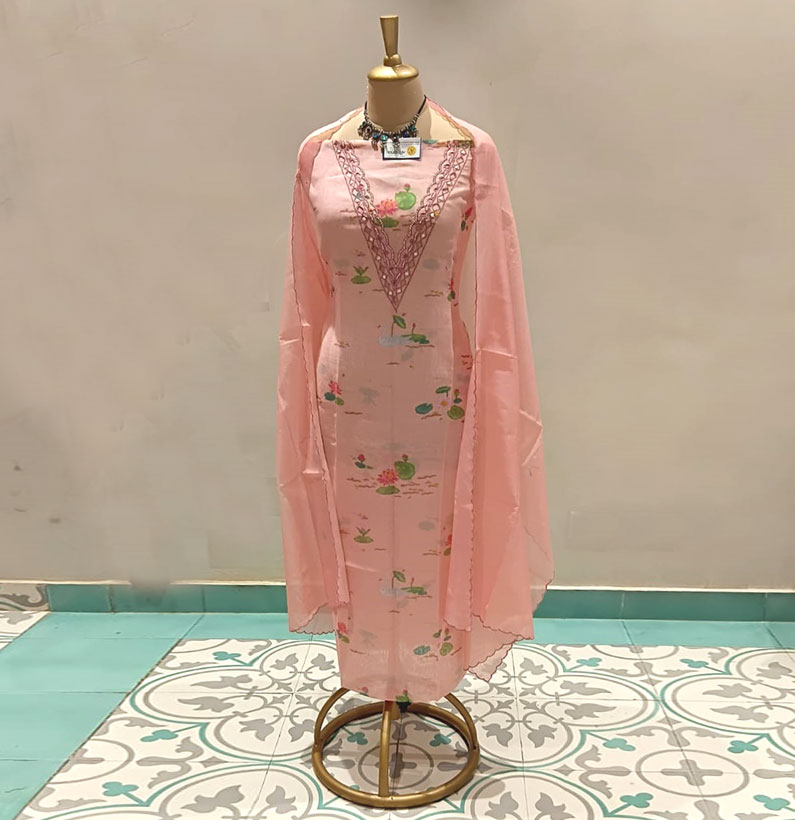 Chanderi cotton suit digital print pink
