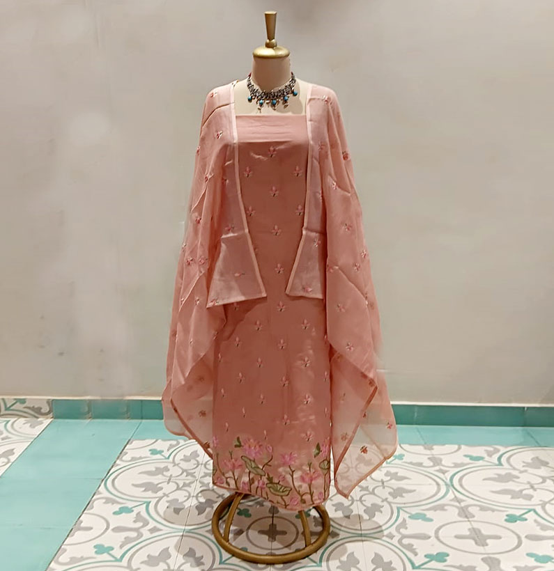 Be the first to review “Chanderi Cotton Suit pichwai embroided coco powder” Cancel reply