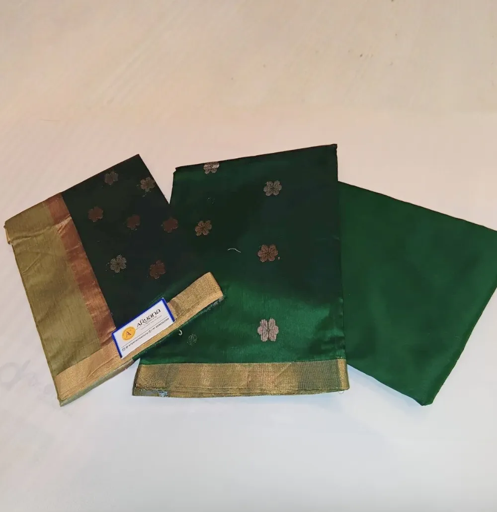 Home Suit Cotton Chanderi Handloom Suit Green Colour