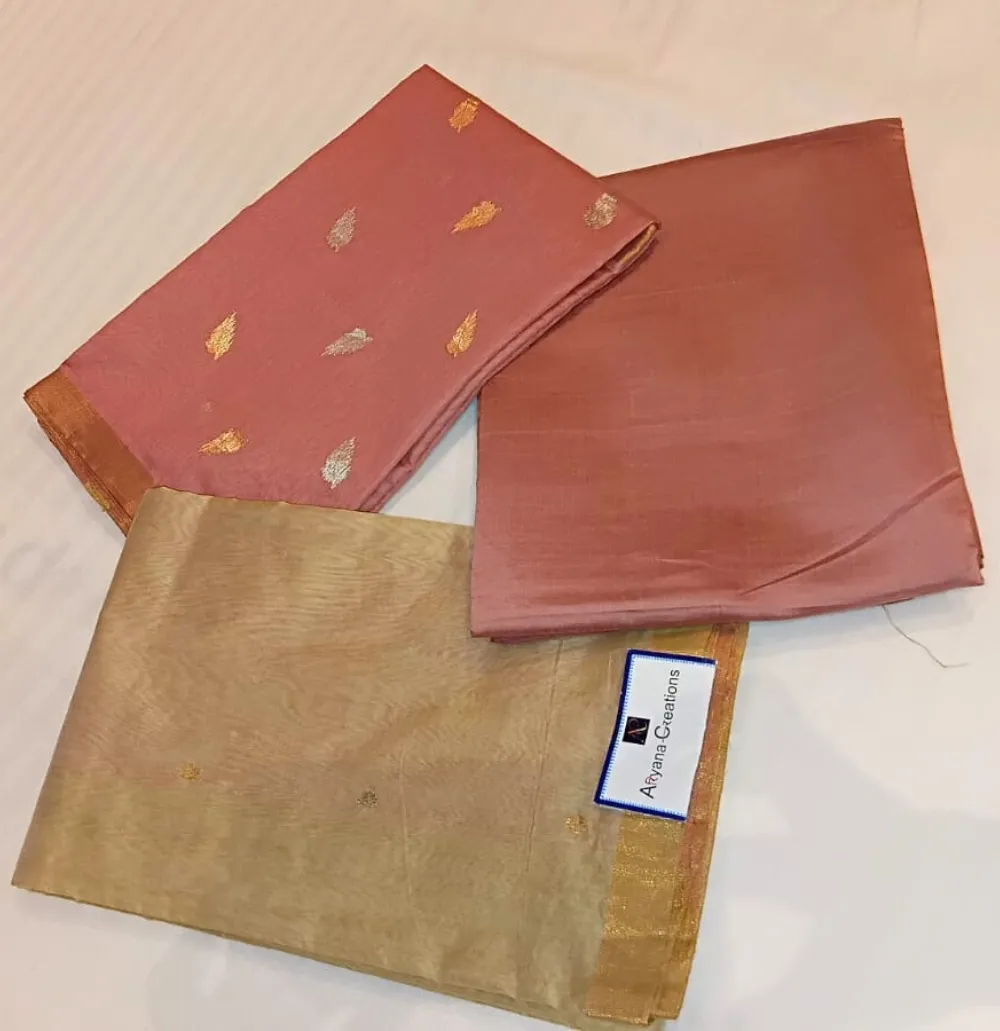 - Draped in a soft mauve shade, this Chanderi handloom suit exudes subtle charm too.
