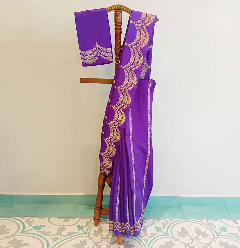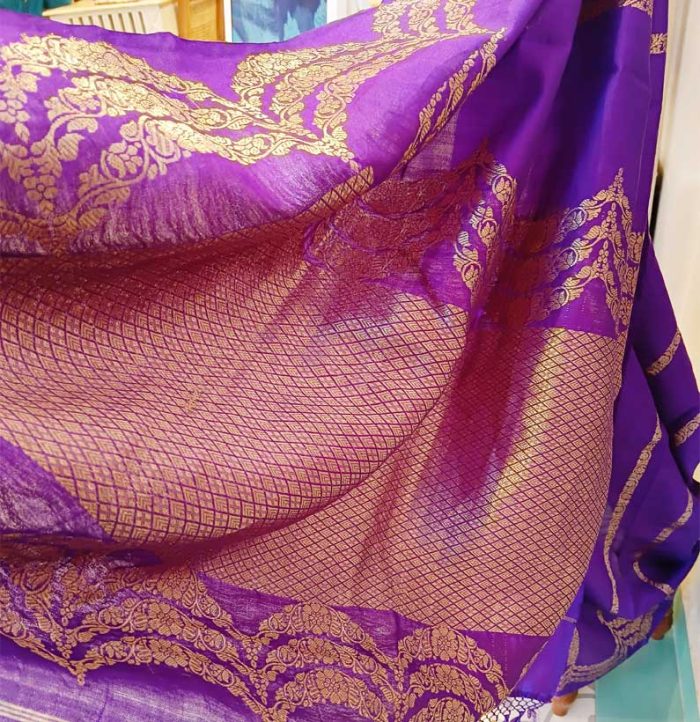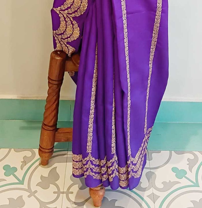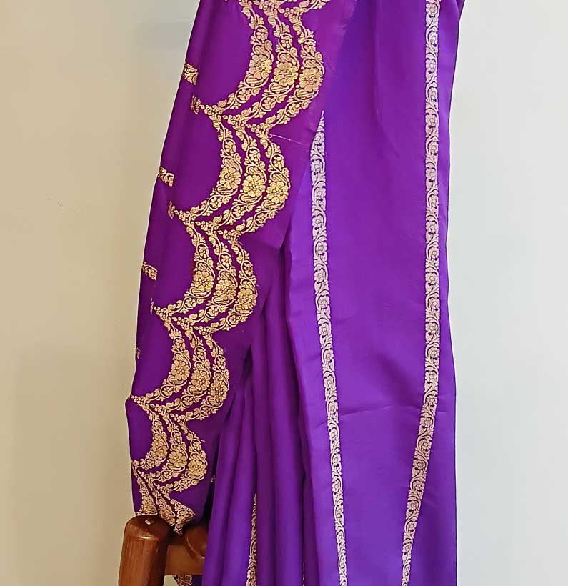 Chiniya silk zari scalap border saree Royal Blue