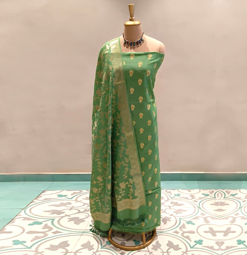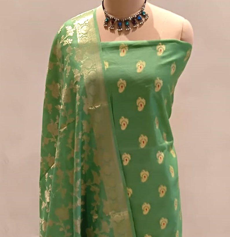 Be the first to review “Cotton brocade suit 3P set pista green” Cancel reply