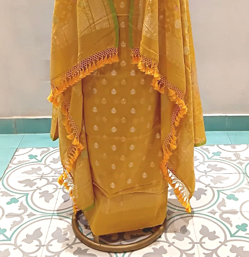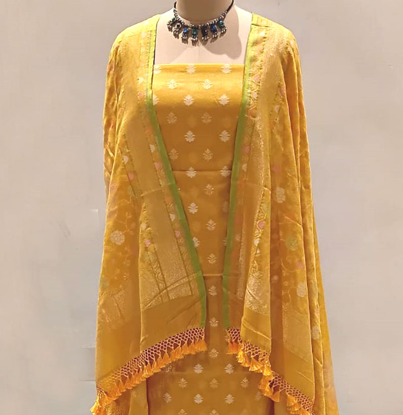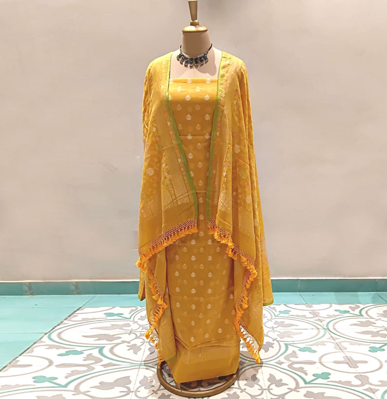 Home Suit Cotton Cotton jamdani multi mina suit yellow