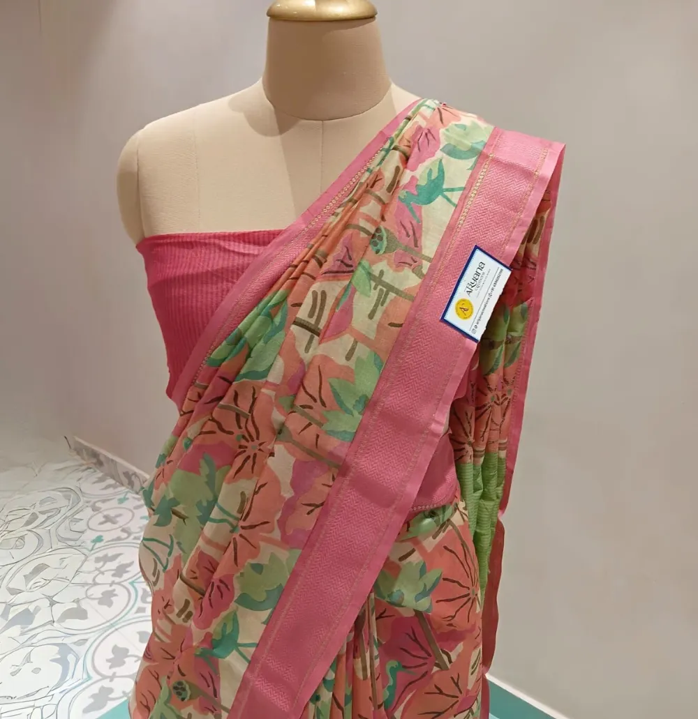 - An unstitched blouse piece is provided, allowing for personalized tailoring too.