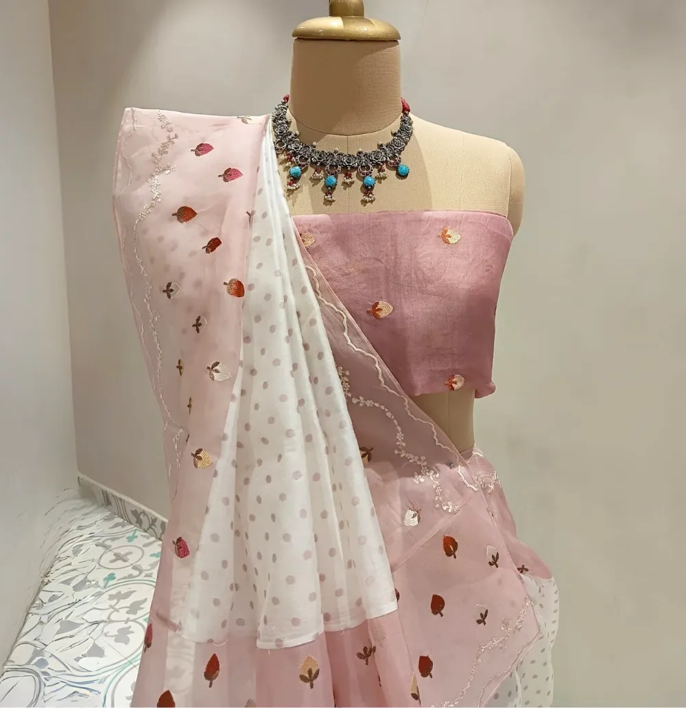 - Made from a cotton saree. It ensures a soft feel and easy drape as well.