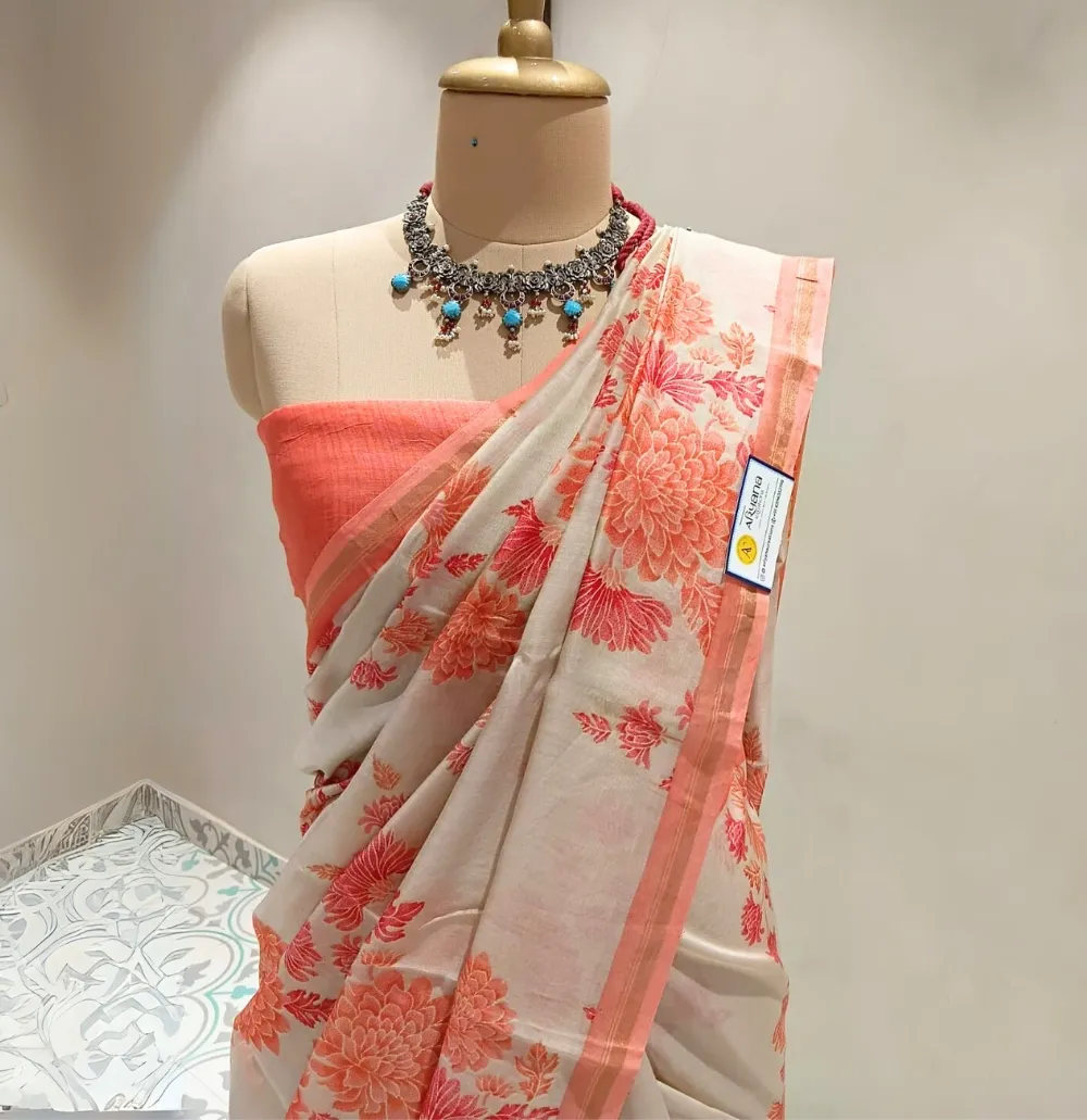 - It comes with an unstitched blouse piece for a personalised fit too.
