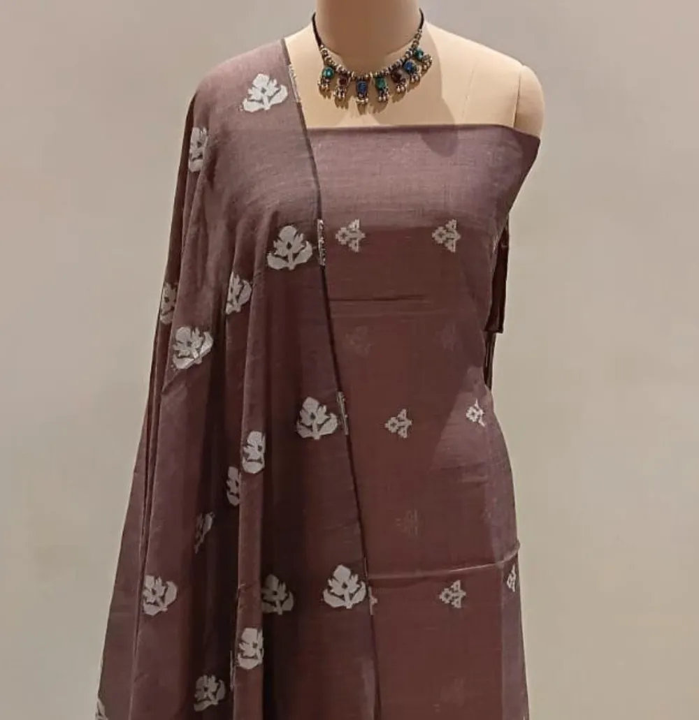 Cotton Tangail Handloom Suit Chocolate Brown