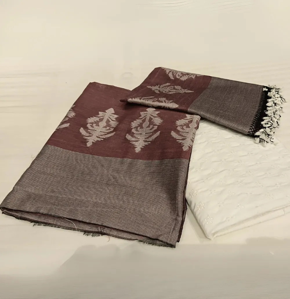 Home Suit Cotton Cotton Tangail Handloom Suit Chocolate Brown