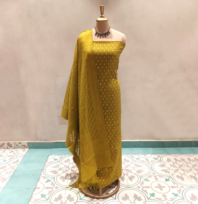 Home Suit Cotton Cotton zari botti 3p suit mehandi green