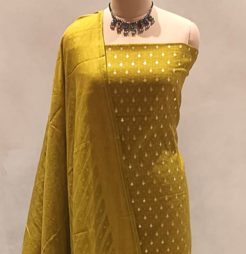 Be the first to review “Cotton zari botti 3p suit mehandi green” Cancel reply