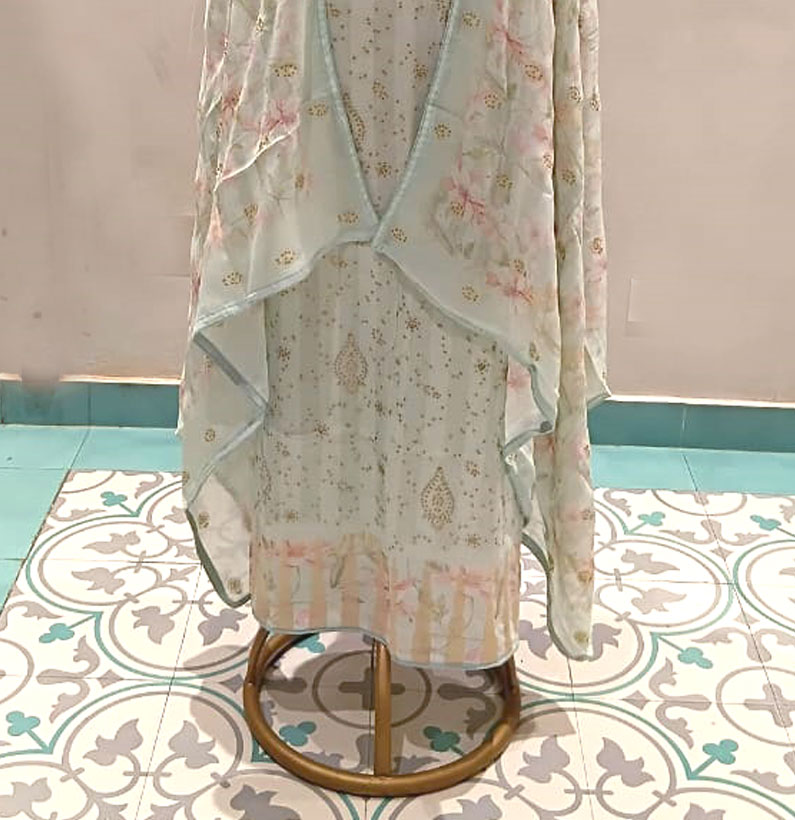 Be the first to review “Crepe silk embroided suit pista green” Cancel reply