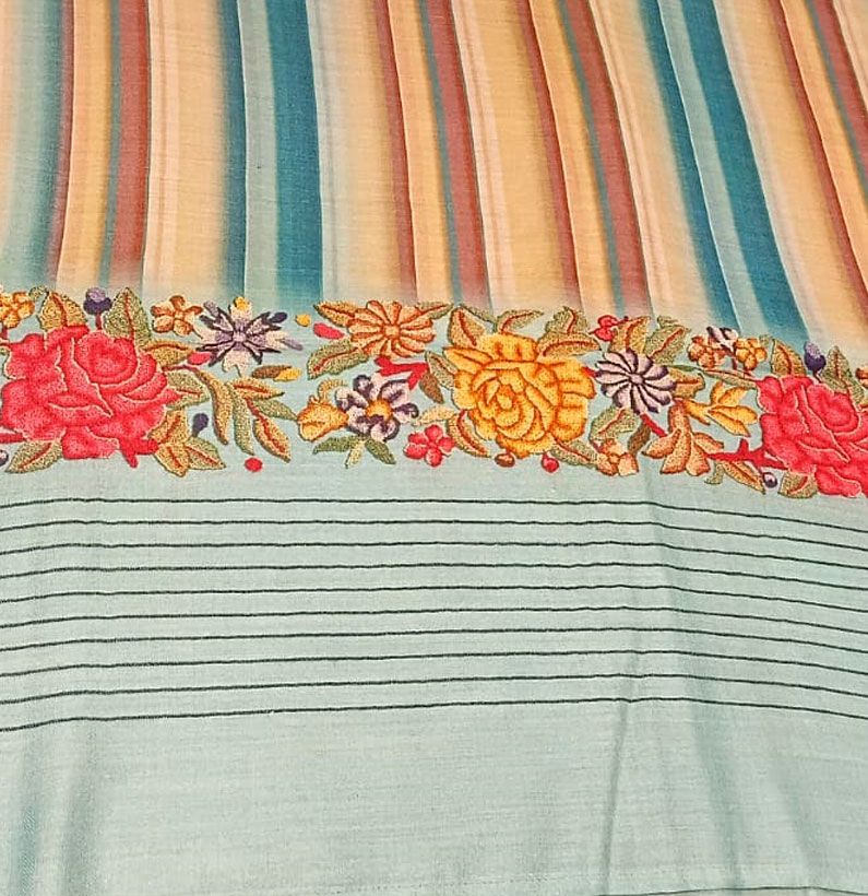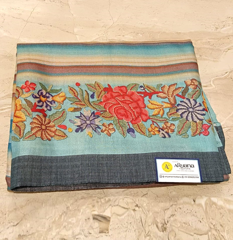Digital print pashmina saree striped sea blue