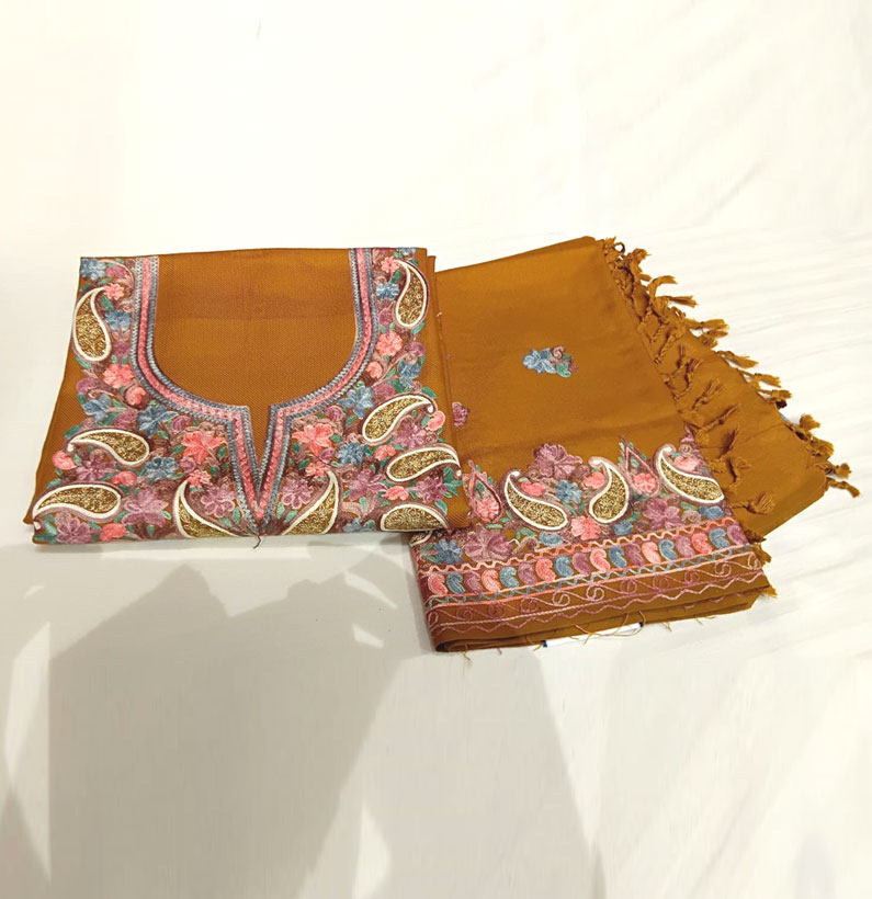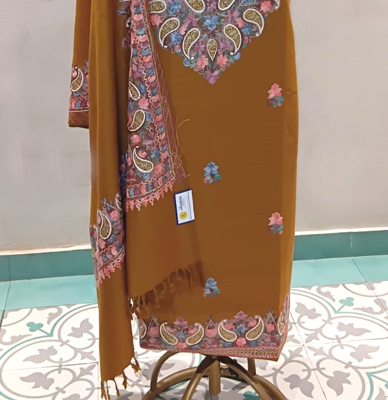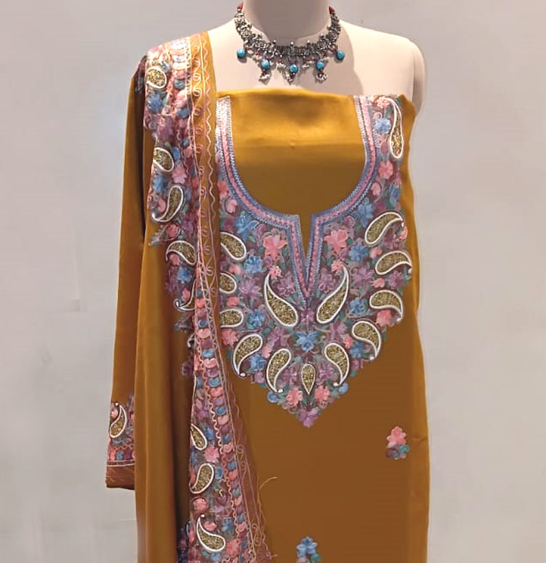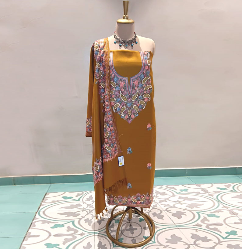 Home Suit Woolen Suit Embroided aari work kashmiri woolen suit mustard