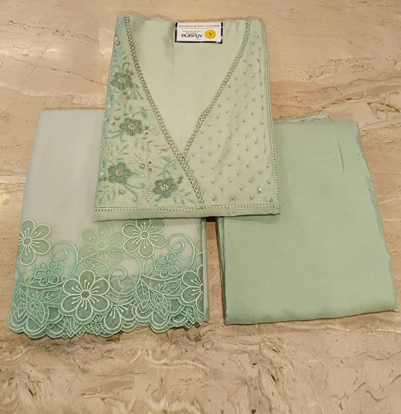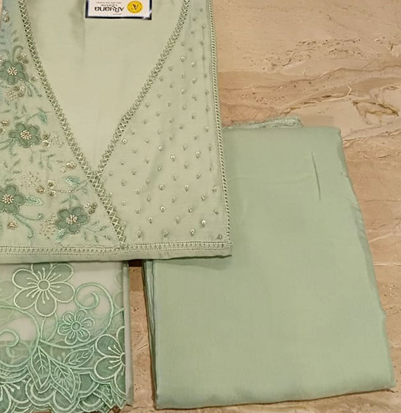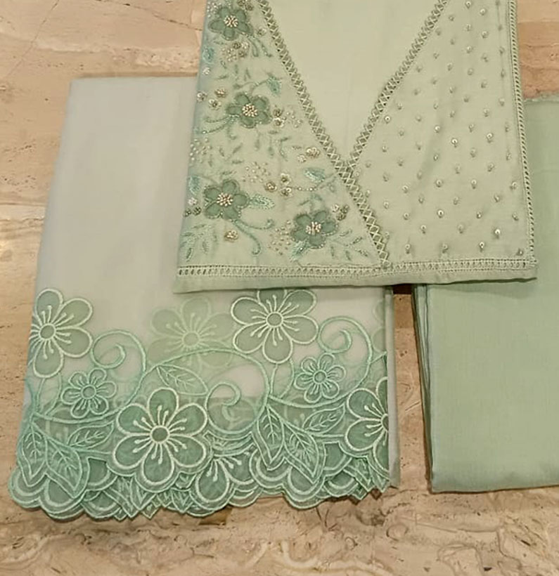 Fancy Chanderi Embroided Suit Pestal Green