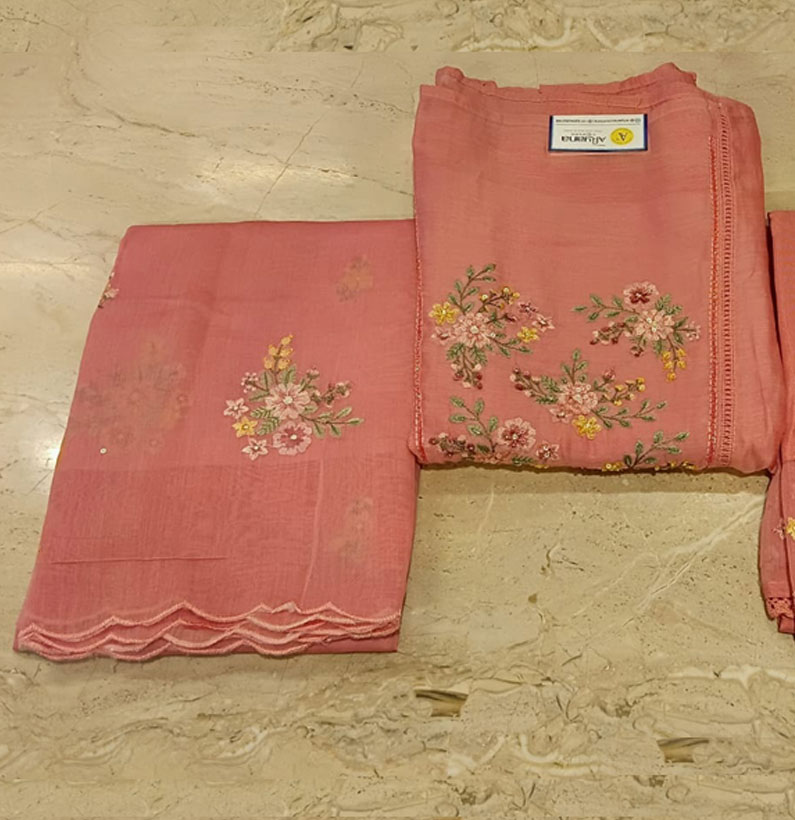 Home Suit Mul Chanderi Cotton Fancy Mul Cotton Emborided Suit Peachy Pink