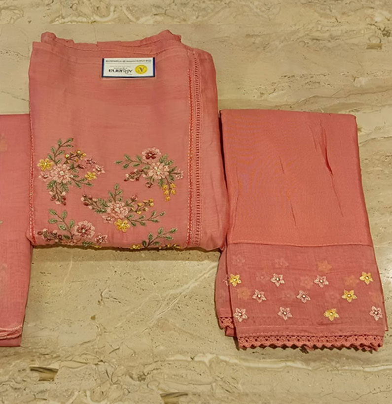 Be the first to review “Fancy Mul Cotton Emborided Suit Peachy Pink”