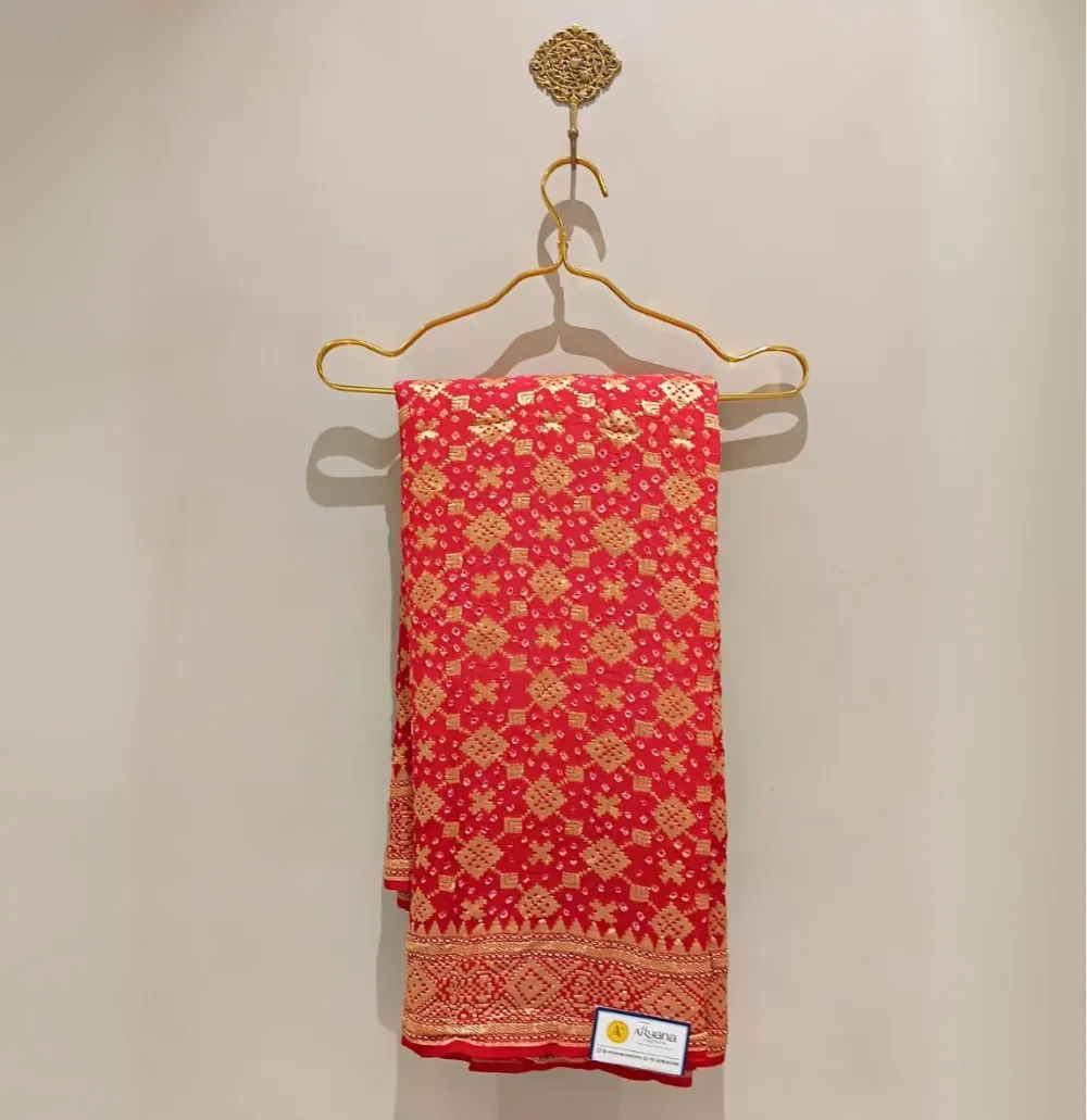 - Enhanced by a luxurious golden zari border, it offers a timeless appeal too.
