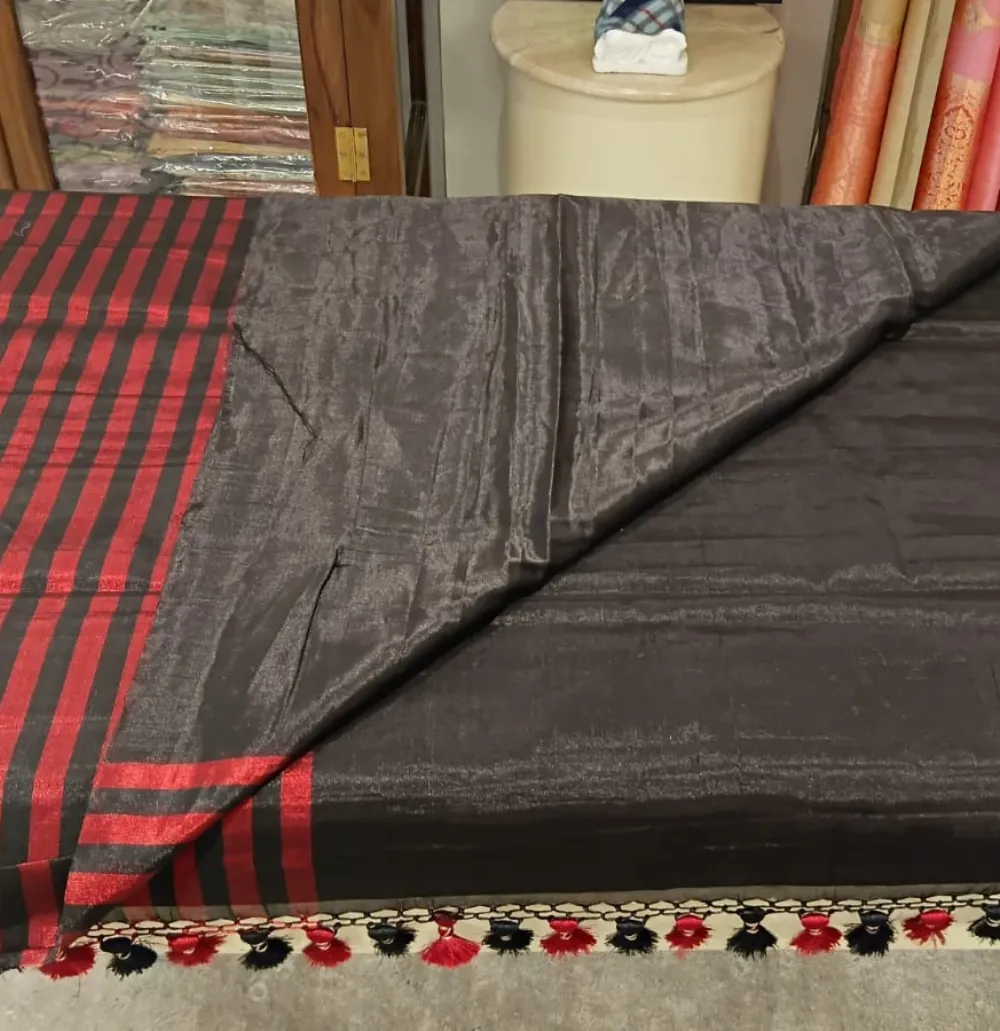 Home Saree Tissue Handloom Tissue Black Red & Black Strip