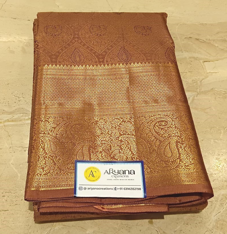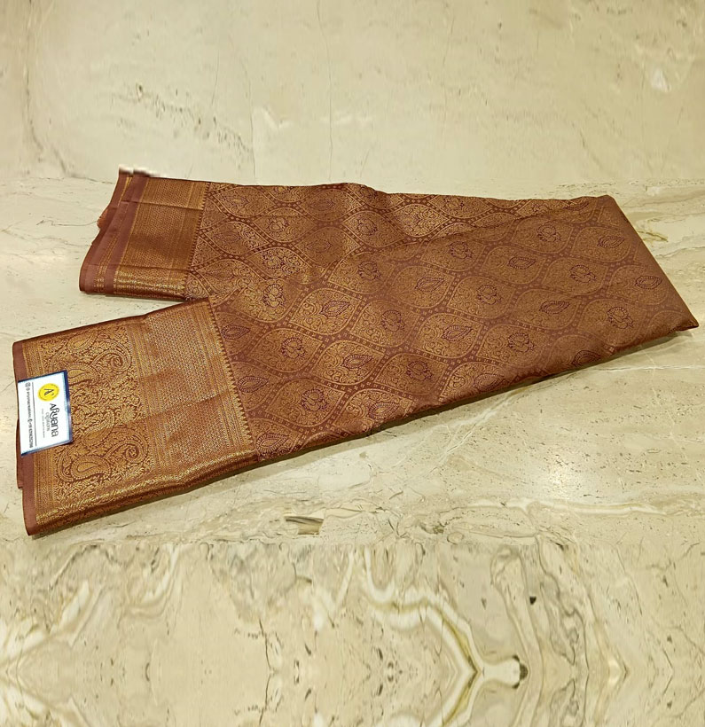 Kanjeevaram silk pure zari saree brown