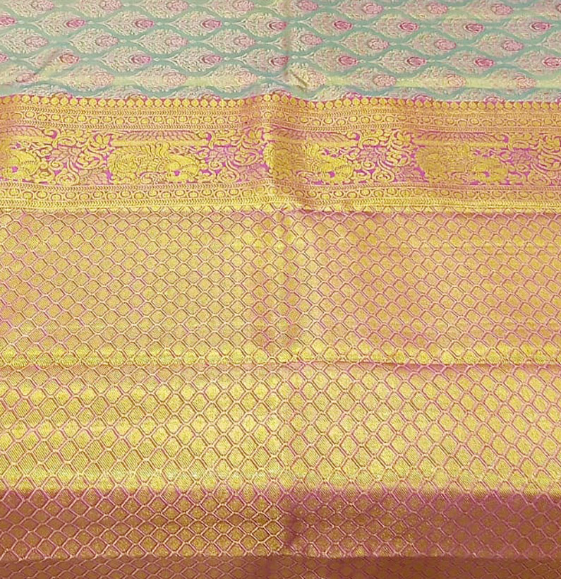 Kanjeevaram silk Pure zari saree green & red