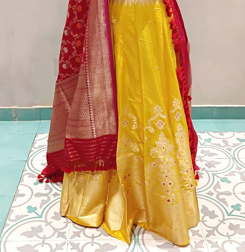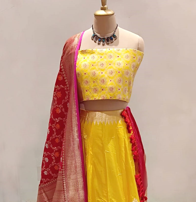 Katan silk lehenga yellow