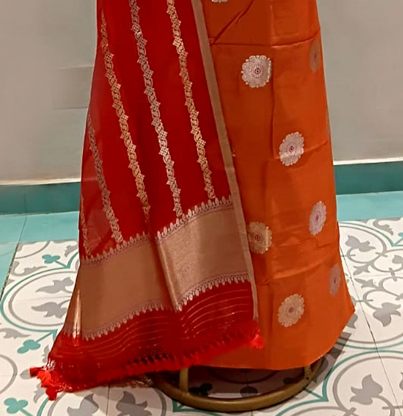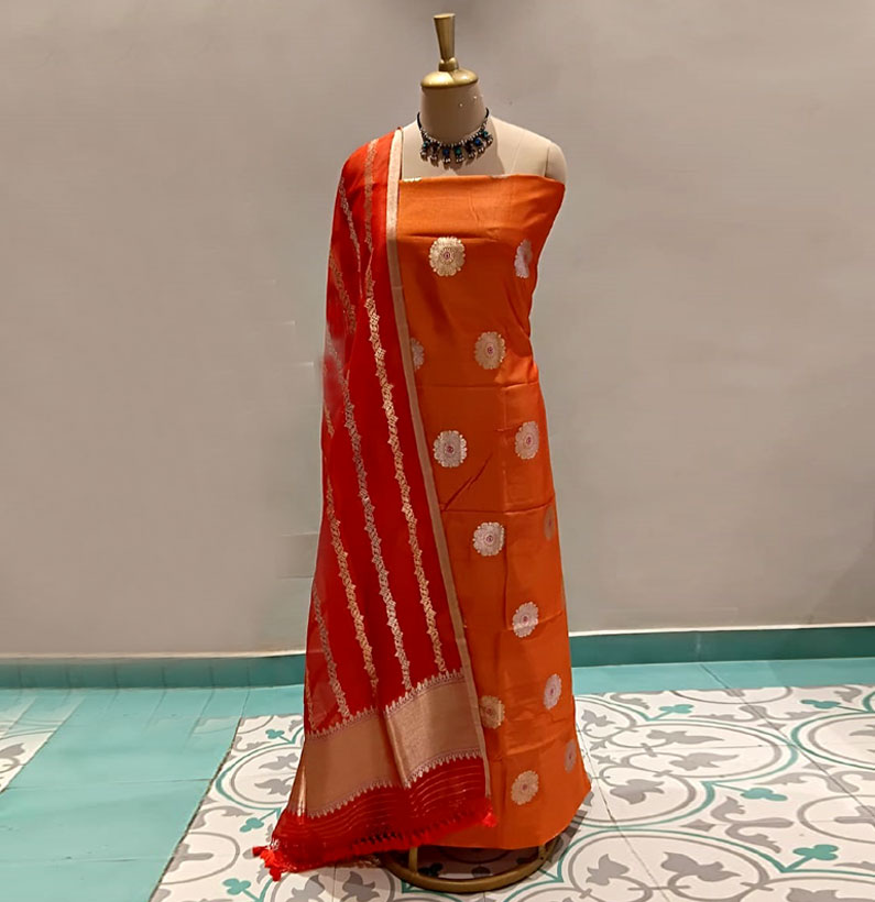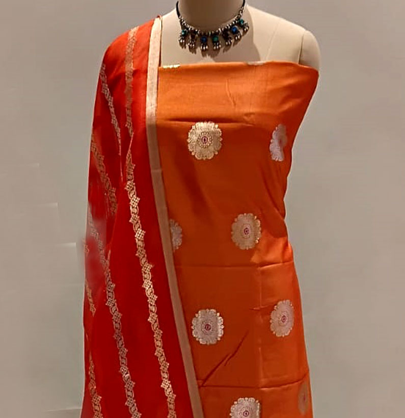 Be the first to review “Katan silk zari mina suit orange/red” Cancel reply