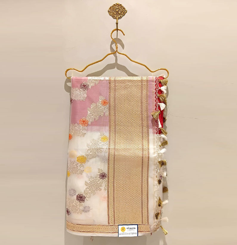 Kora banarasi iktara saree red/white