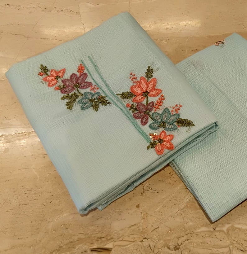 Kota Cutdana Emborided Suit Sky Blue