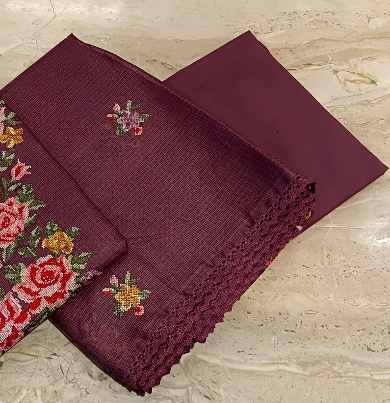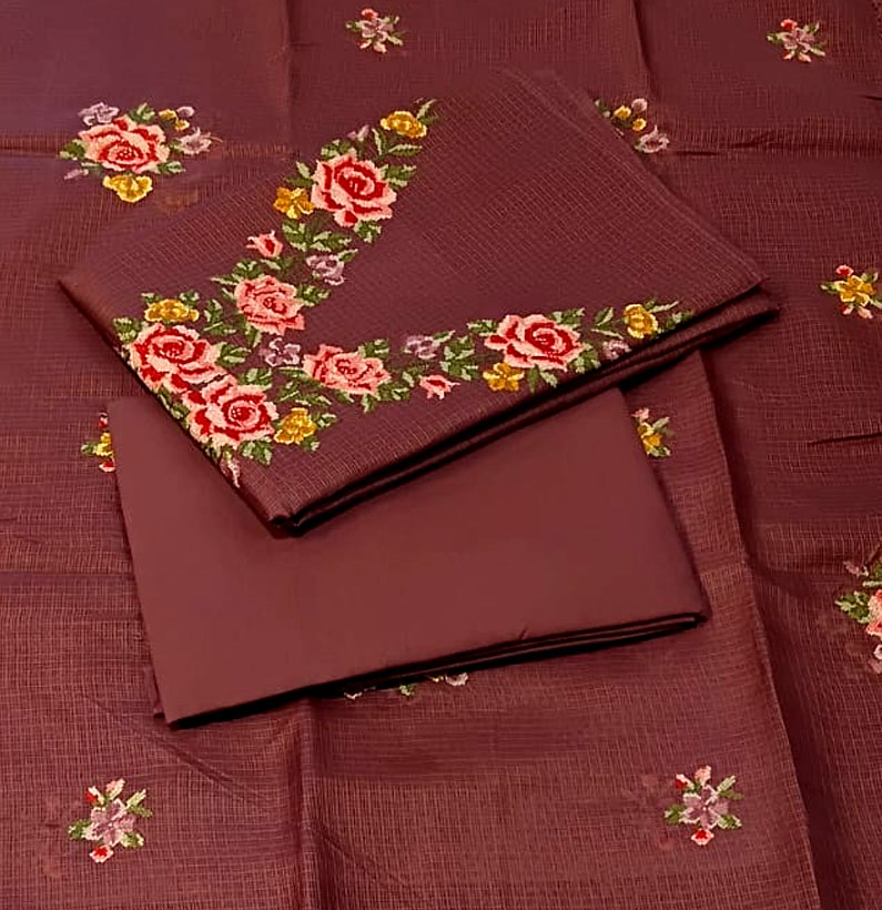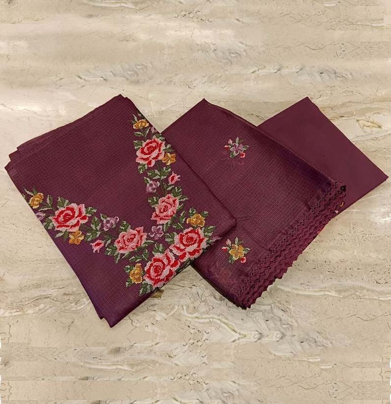 Home Suit Cotton Kota Emborided Suit Set Maroon